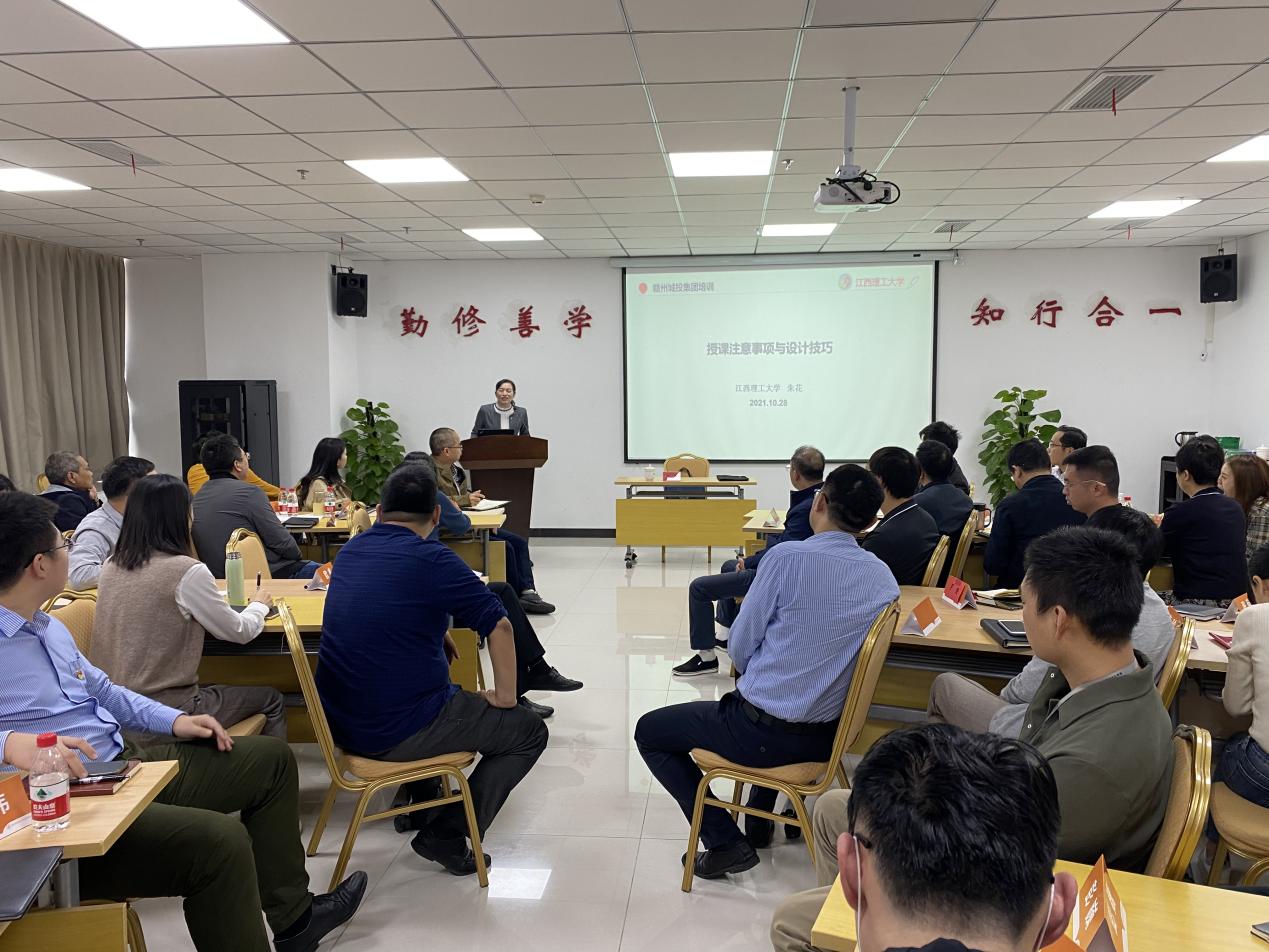 本次培訓邀請江西理工大學機械設計系黨支部書記、碩士生導師朱花副教授現(xiàn)場授課。朱教授以建構主義學習理論為切入點,系統(tǒng)傳授“四元互動”教學法,運用現(xiàn)場模擬演練的方式加深參訓了學員對授課方法的認識與掌握,同時強調了授課時的注意事項,以“手把手”的方式,把“四元互動”授課方法教給參訓學員。講課內容豐富、條理清晰,以說教、互動相結合的方式,增強了全體參訓學員的學習熱情與參與度,濃厚了學習氛圍,提高了培訓實效。